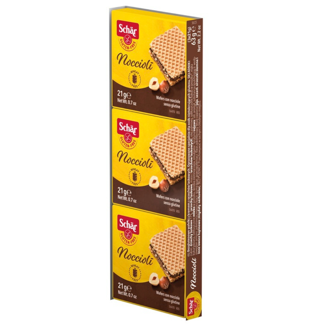 Wafers alle nocciole senza glutine in 3 pratiche monoporzioni.